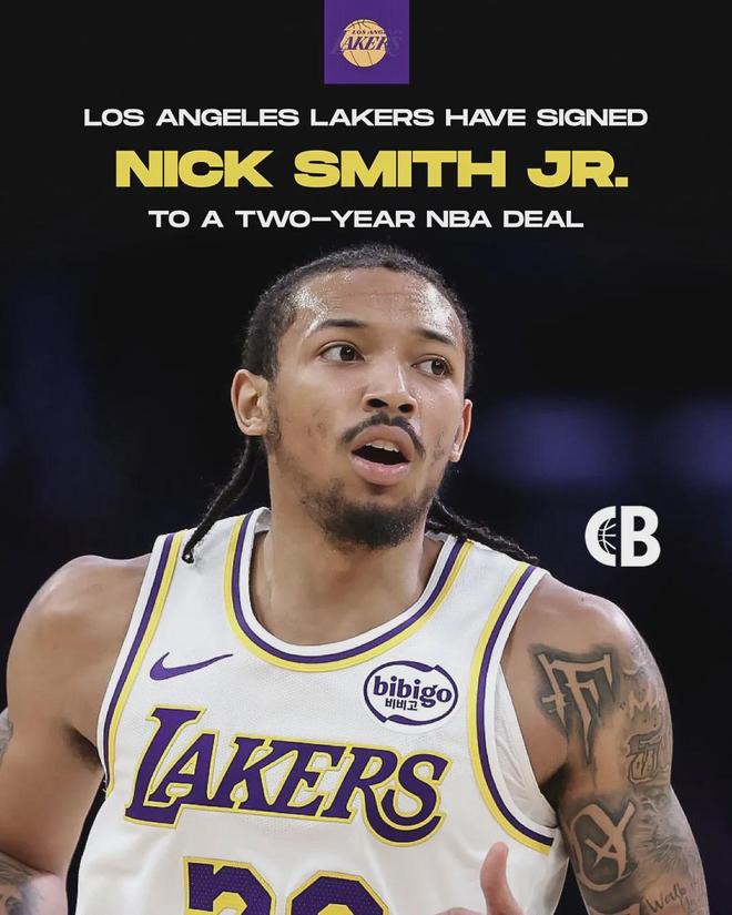 洛杉矶湖人官方宣布:跟小尼克-史密斯(Nick Smith Jr)签下一份两年底薪合同。小尼克-史密斯原来是双向合同,他没有资格征战季后赛。由于东契奇和里夫斯伤停,湖人急需补充后卫线,只能跟小尼克-史密斯签下正式合同。
